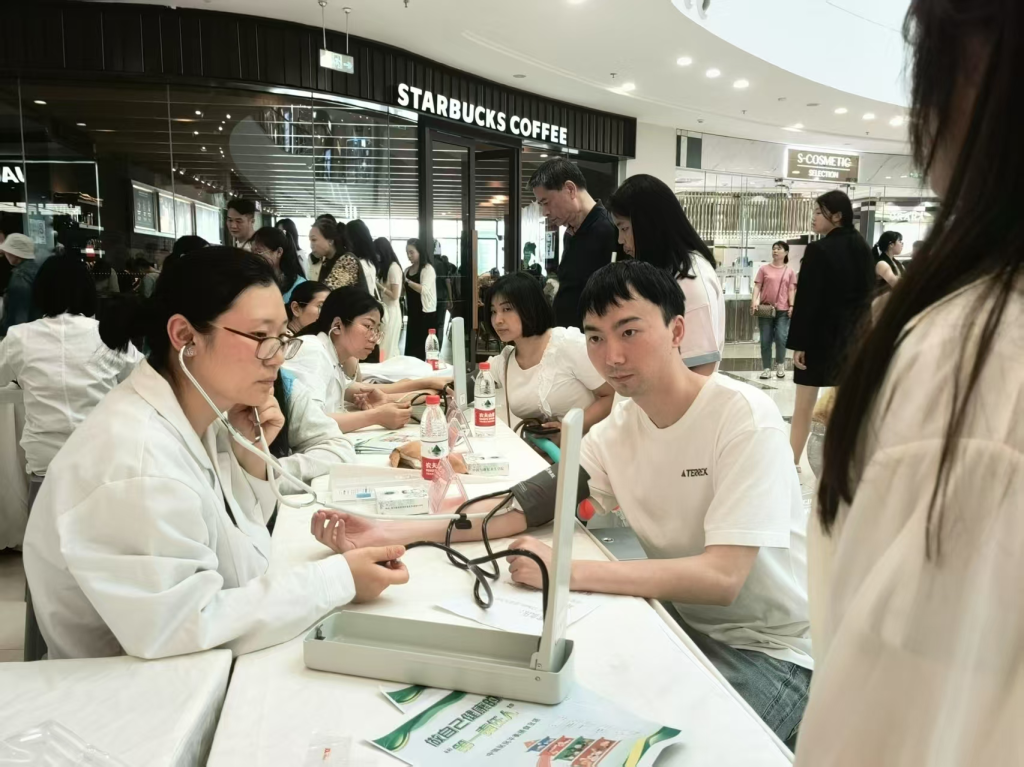 活动现场,"您的血压136/88mmHg,属于正常高值,建议减少高盐饮食""BMI指数显示您处于超重范围,可以尝试每天增加半小时快走"......身着白大褂的员工们在专业教师指导下,有序为市民进行血压测量、体脂分析及健康评估。针对高血压、糖尿病等常见慢性病,团队特别设置咨询专区,通过图文展板、膳食模型等工具开展科普,并发放自制的《体重管理手册》。"这些员工不仅测量精准,解释检查结果时比大医院医生还耐心!"刚完成体检的王阿姨对服务赞不绝口。据统计,活动期间累计服务群众1200余人次,发放健康资料2000余份。