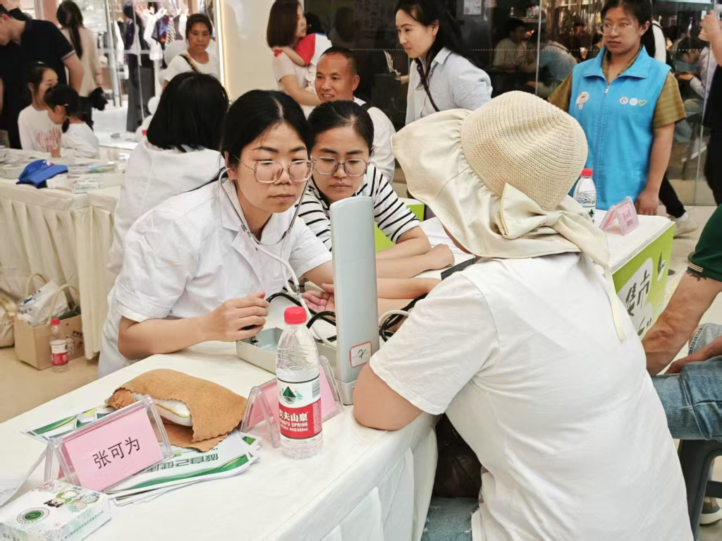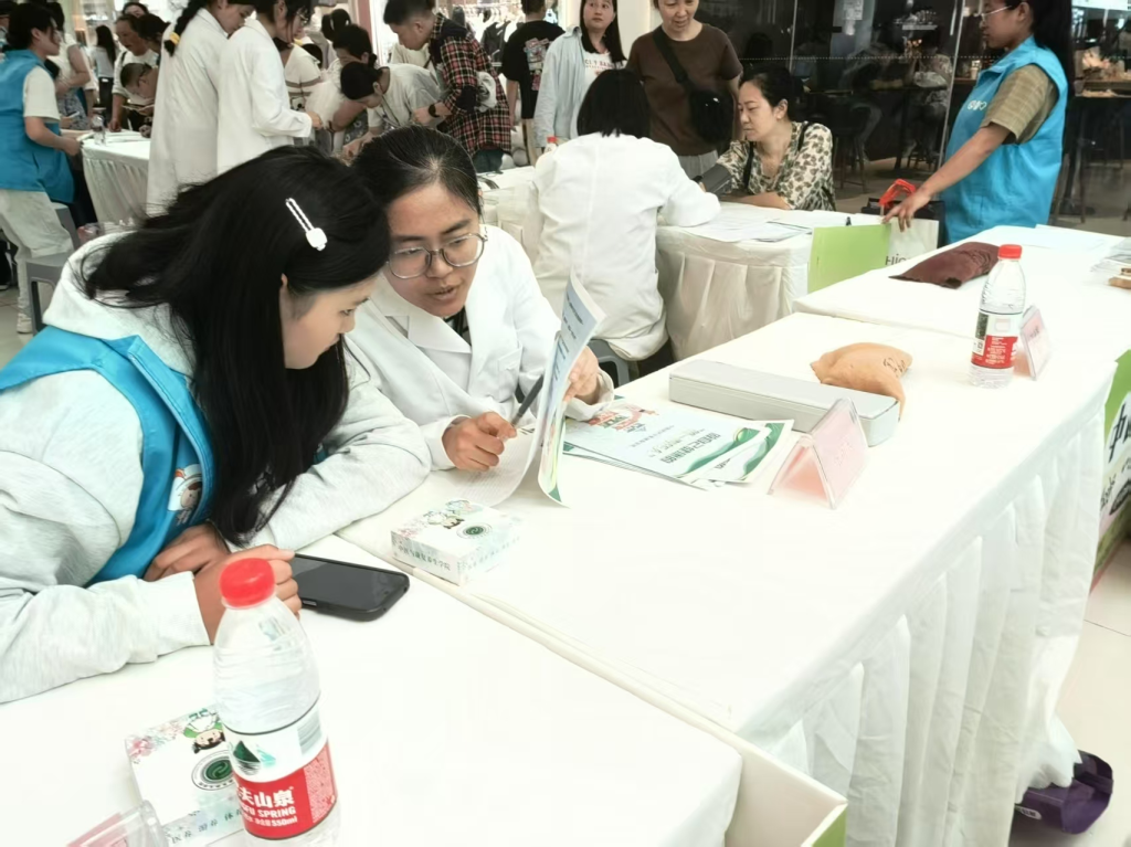 "面对焦虑的咨询者,要先倾听再解答""科普时要将专业术语转化为生活语言"......临床经验丰富的指导教师全程在现场开展"移动式教学"。护理专业大二员工刘同学坦言:"第一次独立面对这么多服务对象,既紧张又兴奋。老师现场指导的沟通技巧,比课堂演练更让人印象深刻。"活动期间,公司同步开展"患者满意度评价""操作规范考核"等职业素养评估,将真实社会服务转化为生动的实践课堂。